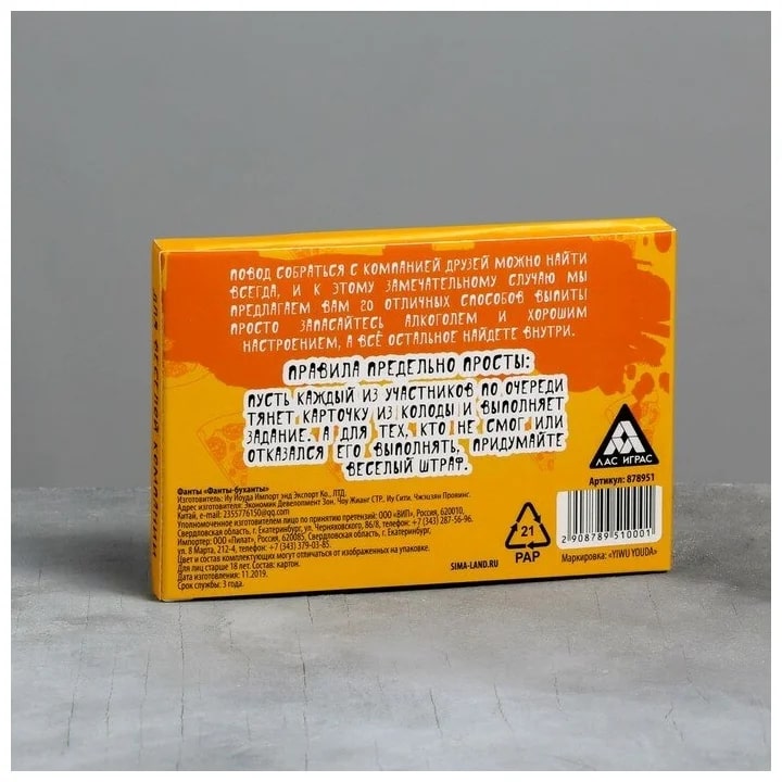 Купить игра для компании "фанты буханты" 20 карт от 100 руб. с доставкой до пункта выдачи в Хвалынске. Интернет магазин ДекаМаркет. Оплата при получении.